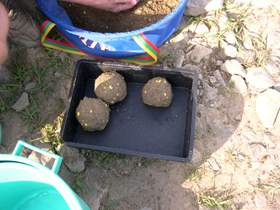 becsomagolt és lekocsizott a köves részre. Beszórt 10 kg kukoricát, majd